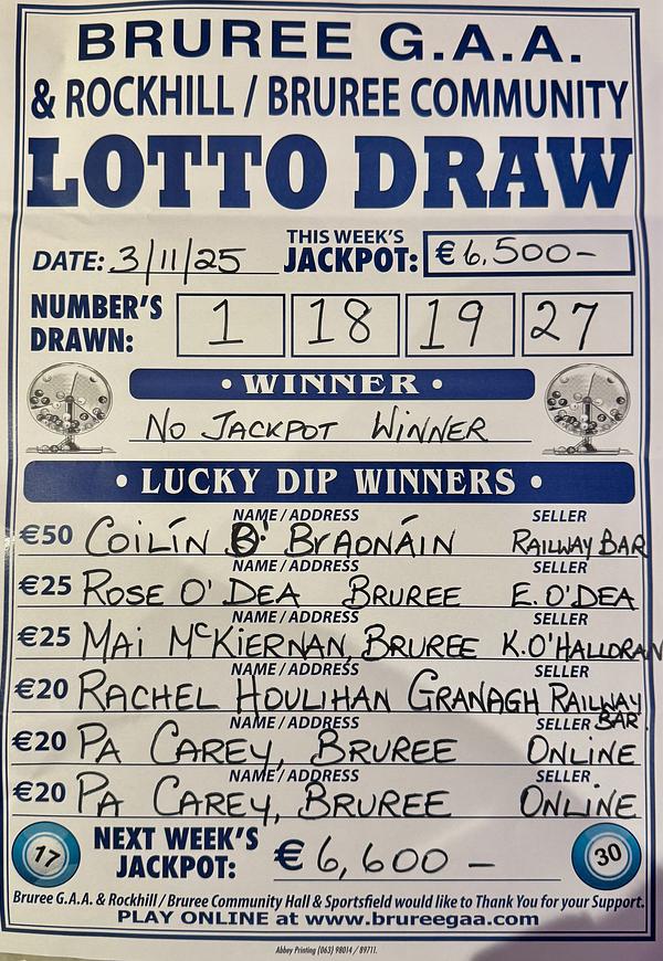 Lotto About Photos Contact History Honours Child Safeguarding MerchandiseDownload our mobile app to hear more about Bruree GAA.