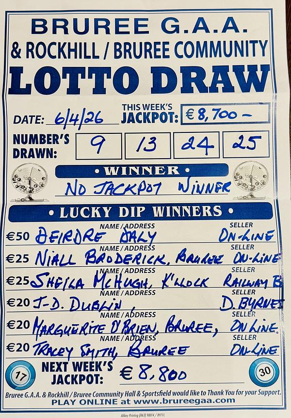 Lotto About Photos Contact History Honours Child Safeguarding Merchandise FundraisingDownload our mobile app to hear more about Bruree GAA.